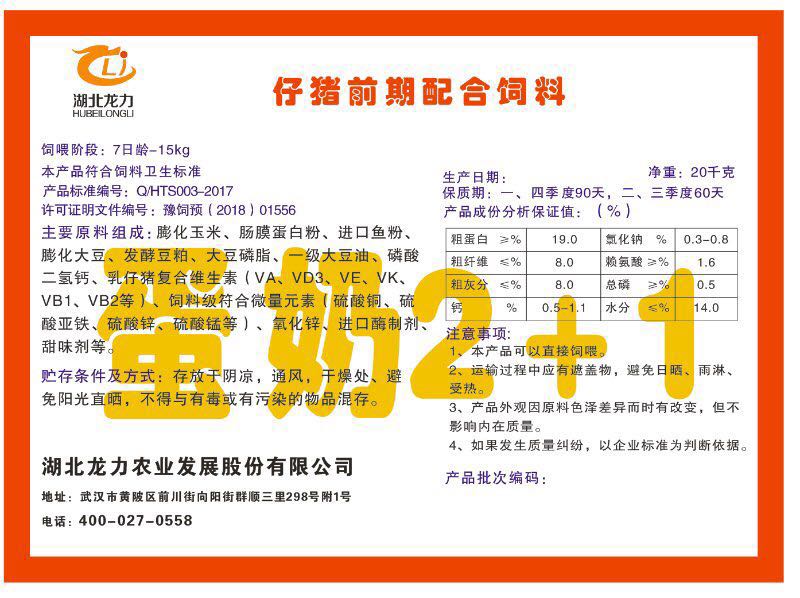 湖北龍力農業發(fā)展股份有限公司坐落于武漢市黃陂區前川街向陽街群順三里298號附1號。公司成立于2014年6月,公司自成立以來把“創(chuàng)全球最大養豬綜合服務”為企業愿景。致力于打造教保料品牌”作為公司發(fā)展的明確目標。公司一直致力于豬營養的研究和開發(fā),積極與國內外高校和科研機構合作,推廣養豬技術、動物營養新概念,向世界農牧企業學習與合作。公司采用國內先進的生產工藝,選擇高精度電子配料秤,高均勻度、無殘留混合機等先進設備....